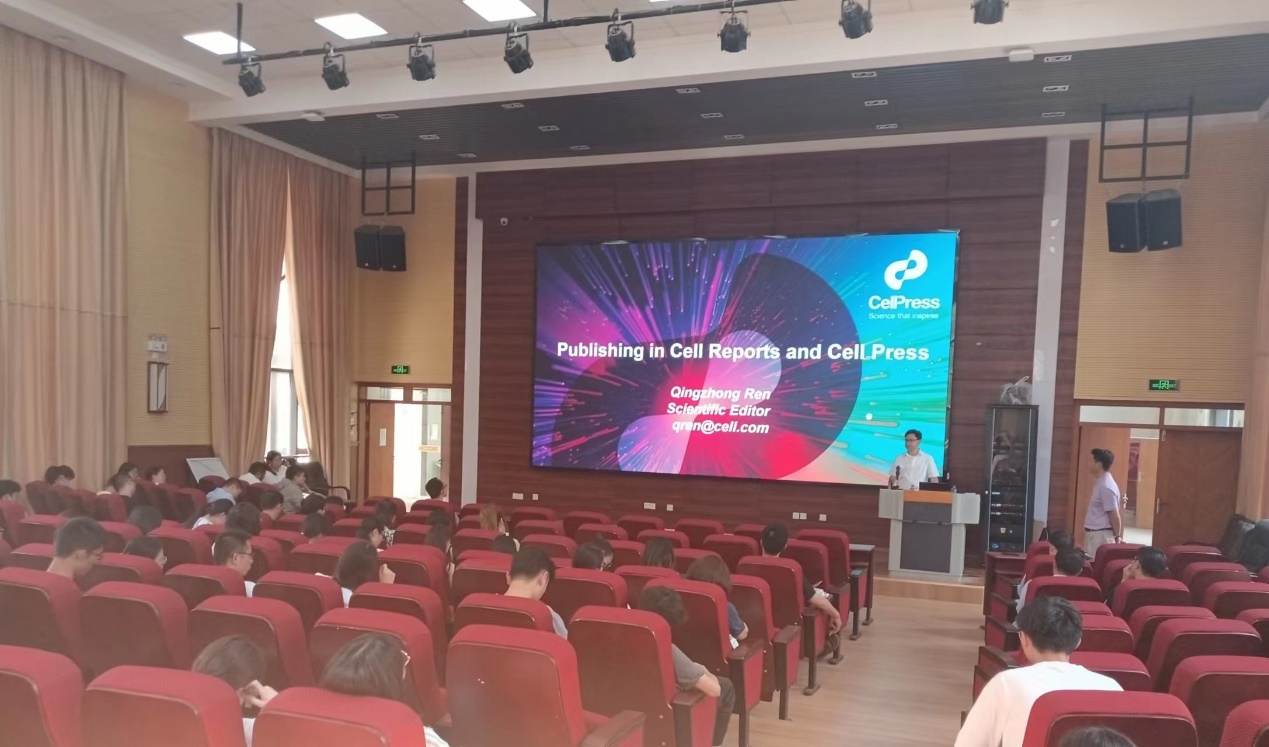 任庆仲博士详细介绍了Cell Reports的定位、稿件处理流程和投稿注意事项等,深深吸引了与会的老师和同学。大家踊跃提问,任庆仲博士与在座师生进行了广泛的学术交流,对大家提出的问题做出了详细的解答,并且分享了自己对科学论文质量把控的见解。